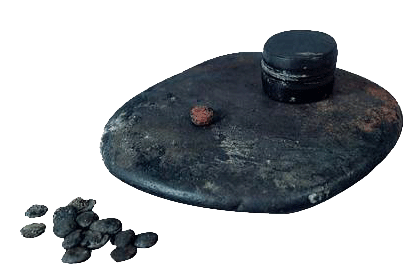 石硯 漢 直徑13.2厘米,高2.8厘米。1983年廣州市象崗山西漢南越王墓出土。廣州市南越王墓博物館藏。