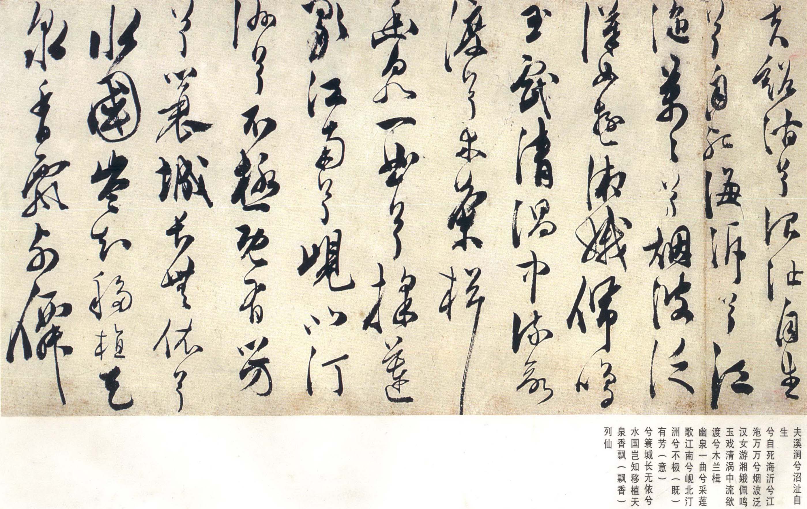 (前缺:若夫西城秘掖,北禁仙流,見白露之先降,悲紅蕖之已秋。昔之菡)萏齊秀,芳敷競發(fā),君門閉兮九重,兵衛(wèi)儼兮千列。綠葉青枝,緣溝覆池,映連旗以搖艷,輝長劍兮陸離。疏兮裂,交流兮相沃,四繞兮丹禁,三匝兮承明。曉而望之,若霓裳宛轉(zhuǎn)朝玉京;夕而察之,若霞標(biāo)灼她虎赤城。既如秦女艷日兮鳳鳴,又如洛妃拾翠兮鴻驚,足使瑤草罷色,芳樹無情。復(fù)道兮詰曲,離宮兮相屬,飛閣兮周廬,金鋪兮璧除。君之駕兮旖旎,蓮之葉兮扶疏,萬乘顧兮駐彩騎,六宮喜兮停羅裾。仰仙游而德澤,縱元覽而神虛,豈與夫溪澗兮沼,自生兮自死,海圻兮江沱,萬里兮煙波。泛漢女,游湘娥,佩鳴玉,戲清渦,中流欲渡兮木蘭楫,幽泉一曲兮采蓮歌。江南兮峴北,汀洲兮不極,既有芳兮莎城,長無依兮水國。豈知移植天泉,飄香列仙,嬌紫臺之月露,含玉宇之風(fēng)煙。雜葩兮照燭,眾彩兮相宣,烏翡翠兮舟青翰,樹珊瑚兮林碧鮮。夫其生也。春風(fēng)晝蕩,爍日相煎,夭桃盡兮李滅,出大堤兮艷欲然。夫其謝也,秋灰度,金氣騰天,宮槐疏兮井桐變,搖寒波兮風(fēng)颯然。歸根息艷兮八九月,乘化無窮兮千萬年,越人望兮長已矣,鄭女采兮無由緣。何深蒂之能固?何香之獨(dú)全?別有待制揚(yáng)雄,悲秋宋玉,夏之來兮玩早紅,秋之暮兮悲馀綠。禮盛燕臺,人非楚材,€霧圖兮蘭為閣,金銀酒兮蓮作杯。落英兮徘徊,風(fēng)轉(zhuǎn)兮衰頹,入黃扉兮灑錦石,縈白蘋兮覆綠苔。寒暑茫茫兮代謝,故葉新花兮往來,何秋日之可哀?托芙蓉以為媒。