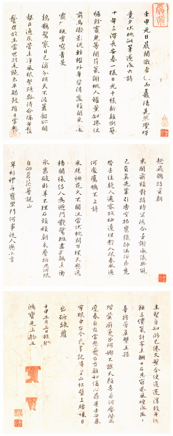 黃道周《自作詩(shī)六首詩(shī)冊(cè)》紙本 楷書(shū) 26.8×32.2cm ×3 崇禎五年壬申(1632年) 浙江省博物館藏