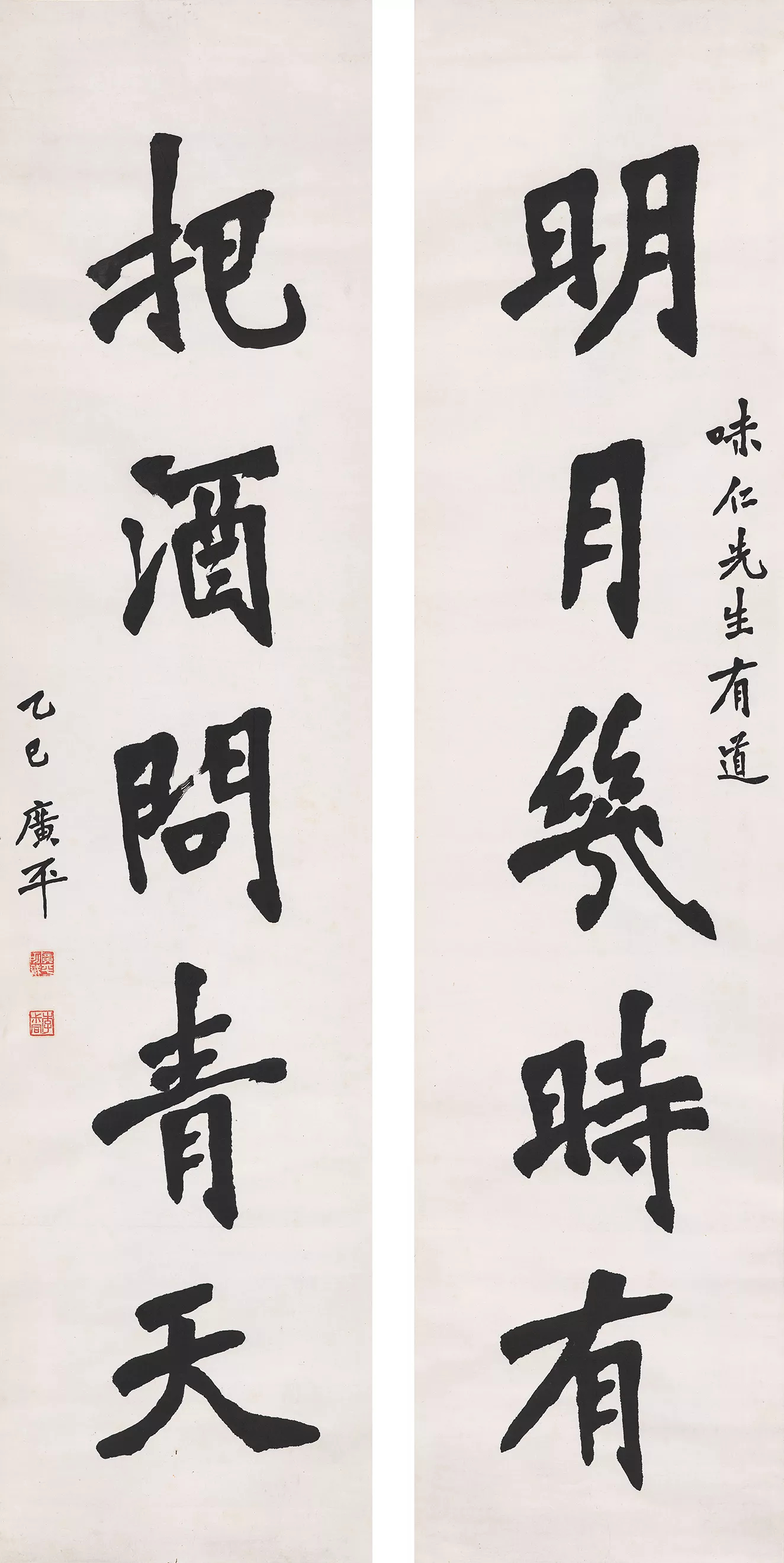 李叔同《楷書(shū)明月把酒五言聯(lián)》1905年