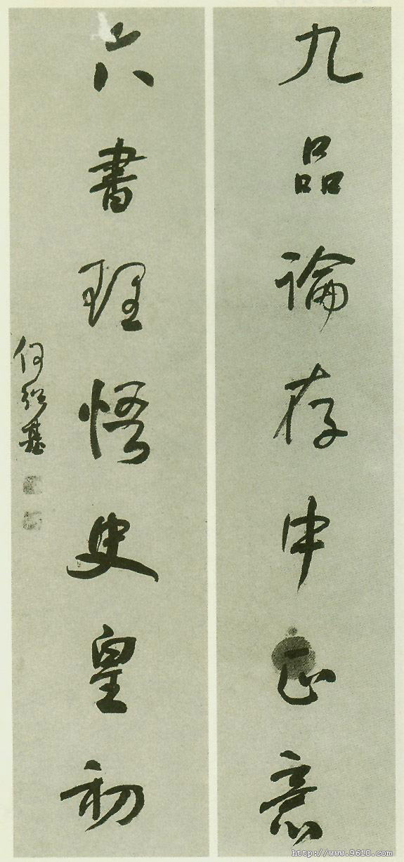 何紹基《九品六書(shū)七言聯(lián)》 128 x28cm 資料來(lái)自《中國(guó)書(shū)法家全集.何紹基》(河北教育出版社)