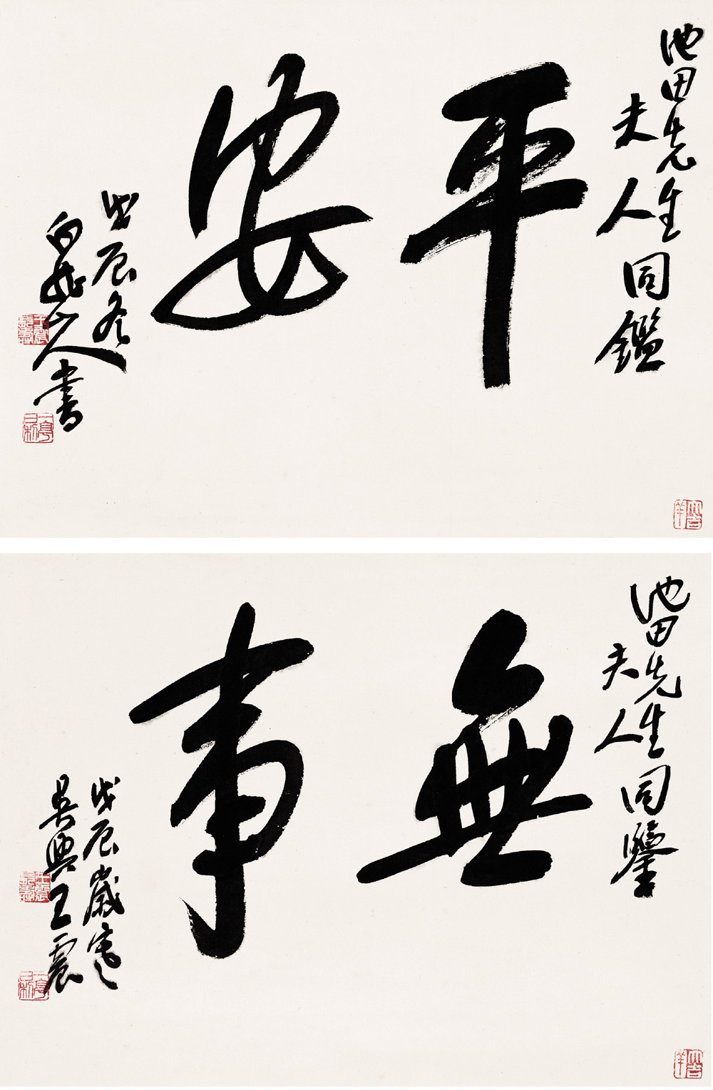 行書(shū)“平安無(wú)事”對(duì)屏