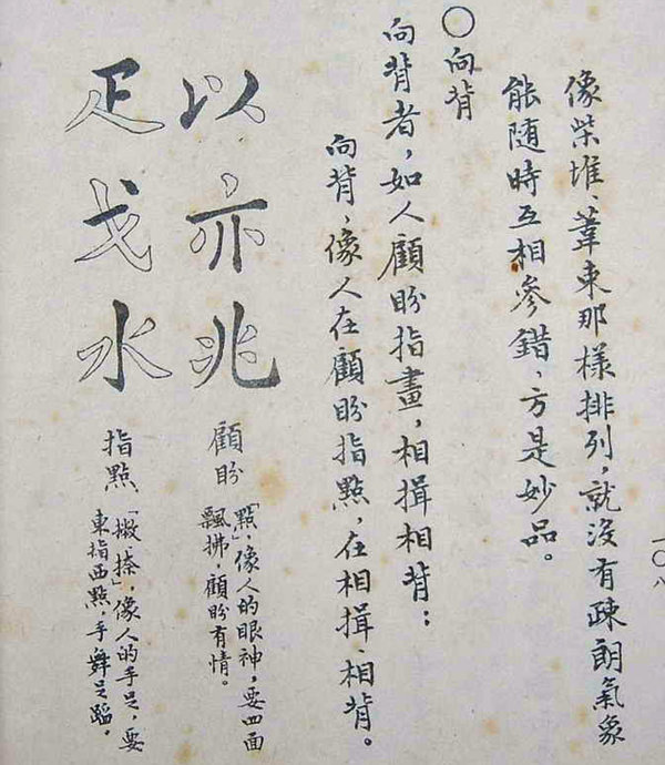 向背者,如人之顧盼、指畫、相揖、向背。發(fā)于左者應(yīng)于右,起于上者伏于下。大要點(diǎn)畫之間,施設(shè)各有情理,求之古人,右軍蓋為獨(dú)步。