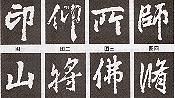 《麓山寺碑》中典型的橫畫為方筆魏碑寫法,圭角明顯,除加大了左低右高的斜度外,其用筆與魏碑基本相同,有北碑的厚重感。但是由于該碑是行書,故橫畫的起筆、收筆處常需與上、下筆畫呼應(yīng),臨寫時(shí)要特別注意。