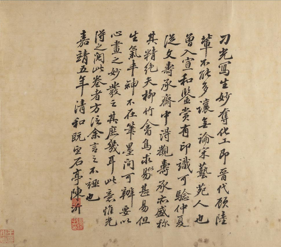 陳沂《跋刁光“叢篁集羽圖”》行書 美國紐約大都會藝術(shù)博物館藏。