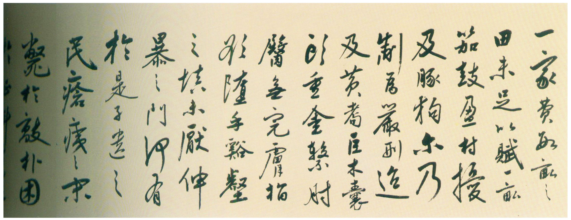 《瑞麥賦》有上下卷,長3米左右,350余行,上卷從“瑞麥賦”三字標題開始,至“受凍而仆者又如干矣”止,共145行,下卷自“天子軫念南服”至末行題款,共213行。現(xiàn)北京故宮博物院藏。明代著名政治家夏言曾經說“文裕書法妙逼鐘、王、比之趙雪松而遒勁過之。”莫如忠云:“儼山先山書法雅宗趙松雪,晚熔李北海,兩晉風格,宛然縣存、足傳不朽。”其書在吳門書法盛行之際,在松江地區(qū)別樹一幟。但明代人對書法藝術的評價總不能合乎實際。像陸深的《瑞麥賦》這樣的作品不論是當時還是后來,都不能算是第一流。其筆力固有過人之處,然結體氣韻皆俗而不足法。