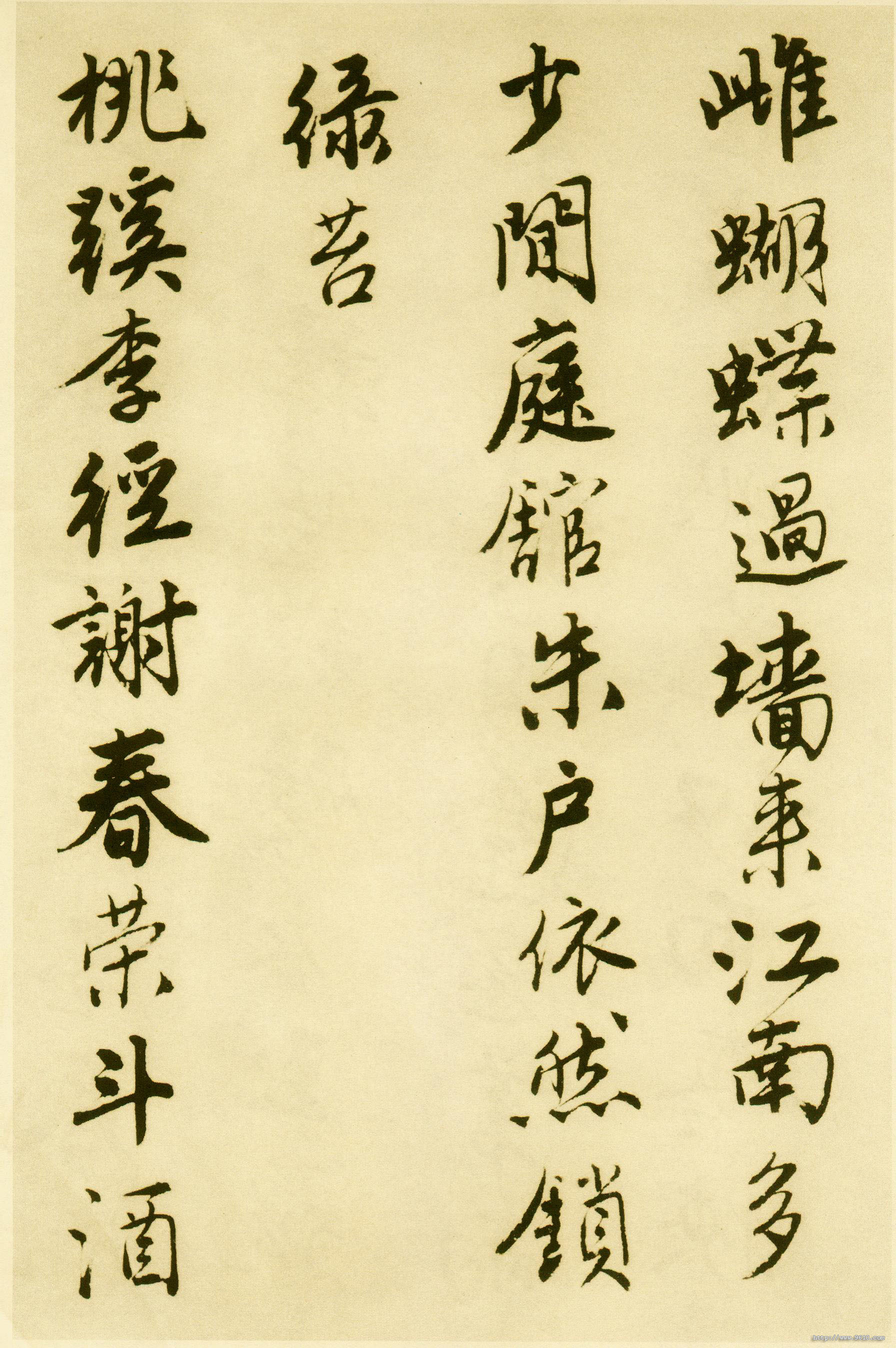 亞字城邊糜鹿臺,春深情況轉(zhuǎn)悠哉。襞衣玉貌乘風去,對酒蓬窗帶雨推。結(jié)子桃花如雨落,挾雌蝴蝶過墻來。江南多少閑庭館,朱戶依然鎖綠苔。