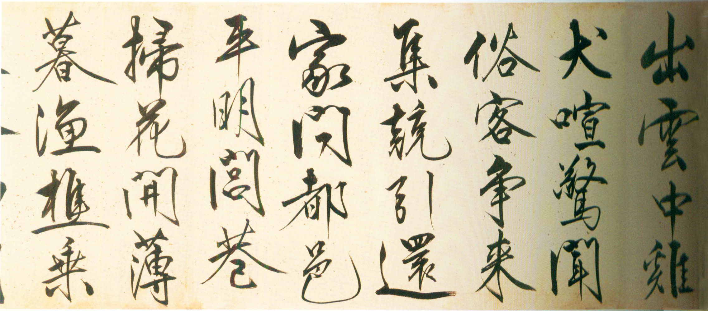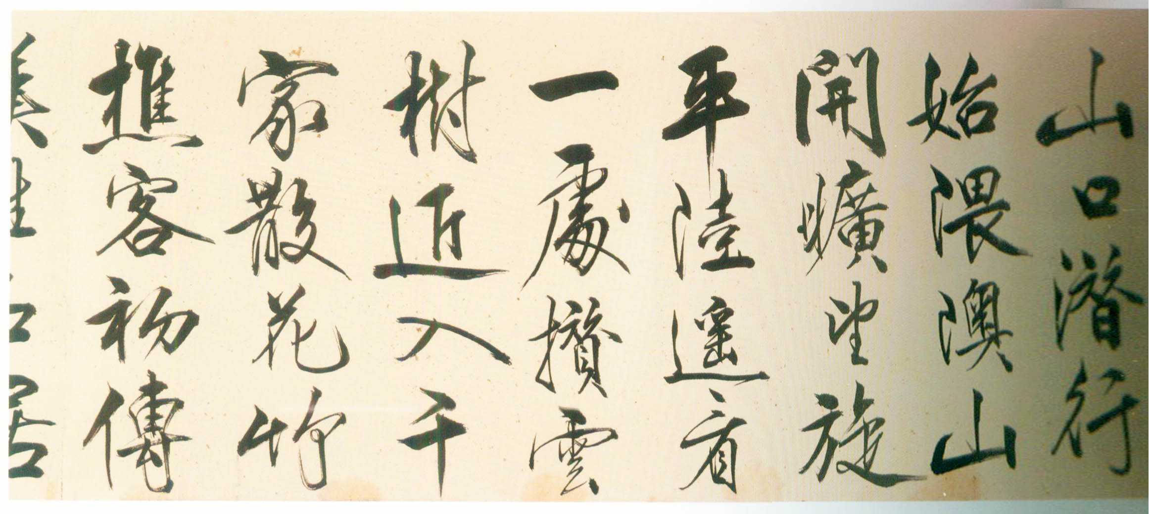 此行書筆畫伸展自如,筆鋒犀利流暢,一氣呵成,有痛快淋漓之感。