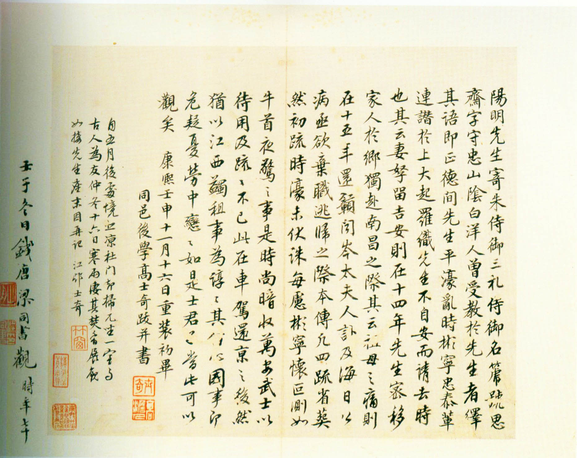 釋文:(注:右頁(yè)當(dāng)與上頁(yè)對(duì)調(diào))此情。得早一日歸,即如早出一日火坑,即受諸公更生之賜矣。至禱至禱,宸濠叛時(shí),嘗以偽檄免江西各郡租稅,以要人心。僕時(shí)亦從權(quán)宜蠲免,隨為