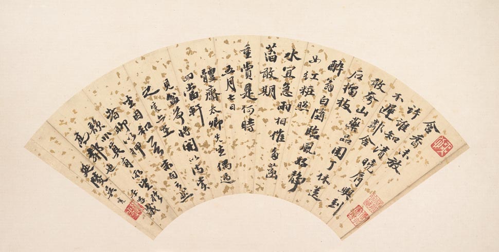 吳寬《和體齋賞荷詩一首扇面》紙本金箋行書 17.5×49.5cm 美國紐約大都會藝術博物館藏