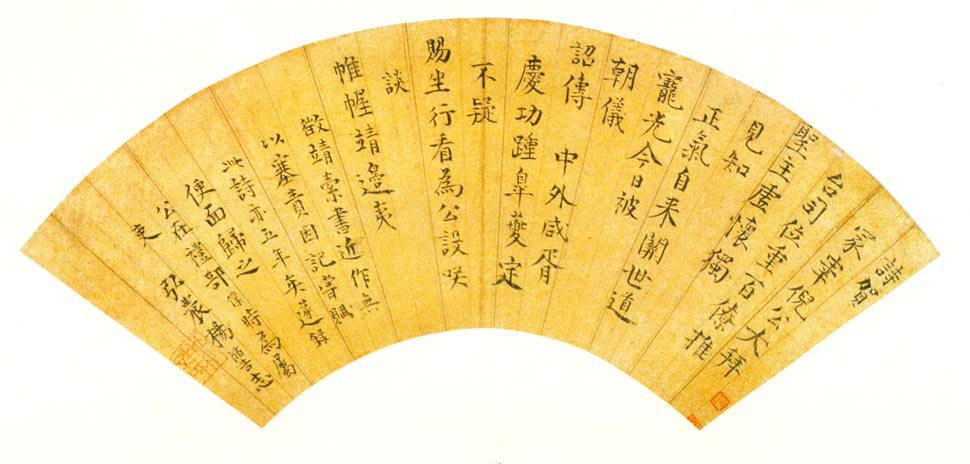 楊循吉《賀倪家宰拜爵》金箋楷書 14.8×45.8cm 南京博物院藏