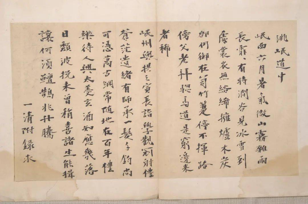 明代行書(shū)詩(shī)箋,一級(jí)文物。楊一清書(shū)。砑花箋紙。縱高 35 厘米、橫寬 61 厘米。款署“一清附錄求”。內(nèi)容為行書(shū)七律二首:洮岷道中岷西六月暑氣傲……。為文人席間唱和。現(xiàn)藏甘州區(qū)博物館。