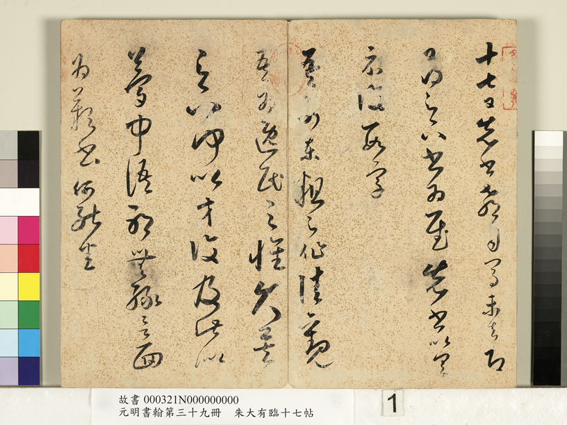 朱大有《臨十七帖冊》紙本草書。十二開。每開均29.2×35.9cm。臺北故宮博物院藏