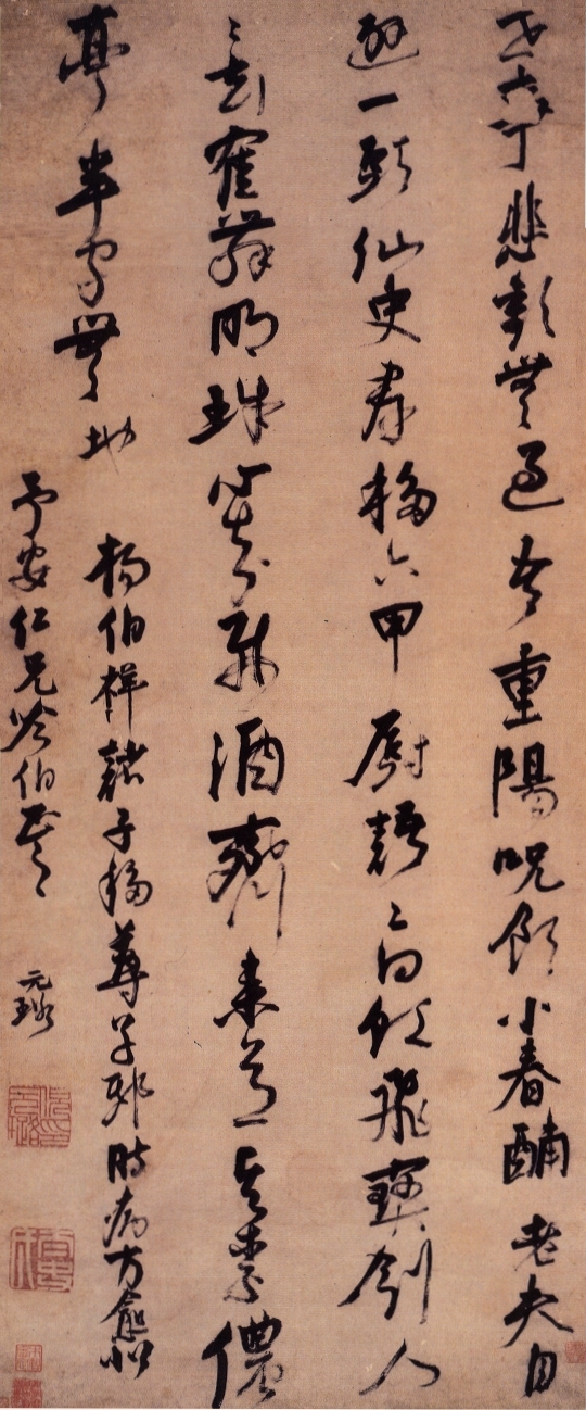 此件為倪鴻寶自書七言律詩一首,時當重陽佳節(jié)前后,又逢病體方愈,知友見訪,心緒歡愉,畫面呈現(xiàn)一種步履穩(wěn)健,頓挫有節(jié),而又神采奕奕的韻致。倪氏傳世墨跡不多,且多屬綾本,此件為少見的紙本。點畫奇崛,墨采飛動,章法謹嚴,筆勢特為沈郁,與鴻寶其他習見行草書風之偏于痛快者異趣,是倪氏作品中難得一睹的經(jīng)典之作。