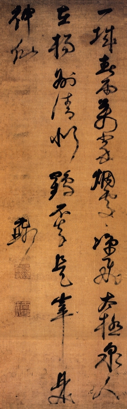 倪元璐《“一城春雨萬家煙”七言詩軸》 絹本行草書,127×40cm。臺灣何創(chuàng)時(shí)書法藝術(shù)基金會藏