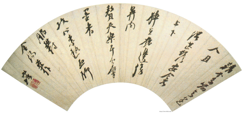 倪元璐《自書“請(qǐng)不多留意”五言詩(shī)扇面》 紙本行草 16.6×50.7cm 吉林省博物館藏