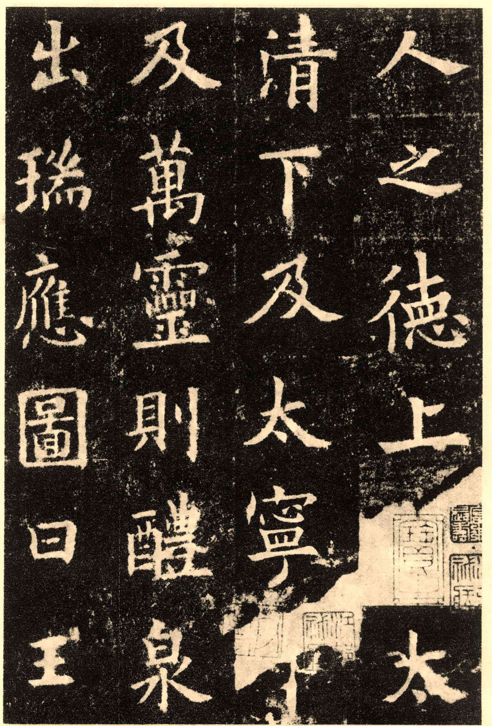 銘文后半部,它是魏征發(fā)揮的治國安邦的政治主張,至今猶有借鑒 價值。“黃屋非貴,天下為憂”,“居高思墜,持滿戒溢”的名句就出于此碑。