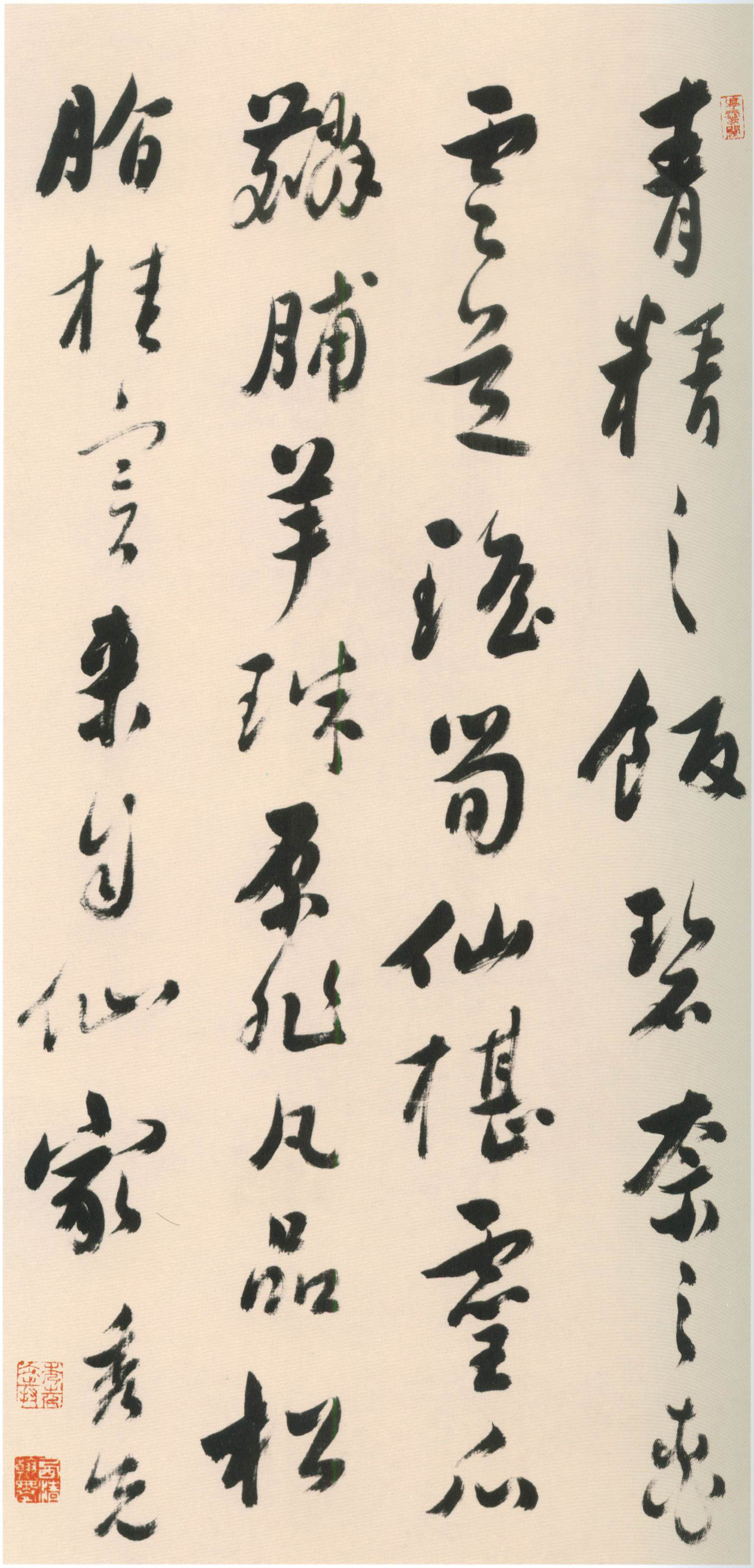 釋 文:青精之飯,碧奈之花。雲(yún)芝瑤筍,仙椹靈瓜。麟脯羊珠,原作凡品。松脂桂實,來自仙家。 款署:秀先 【資料來源】《中國法書全集》-17-清2(文物出版社)