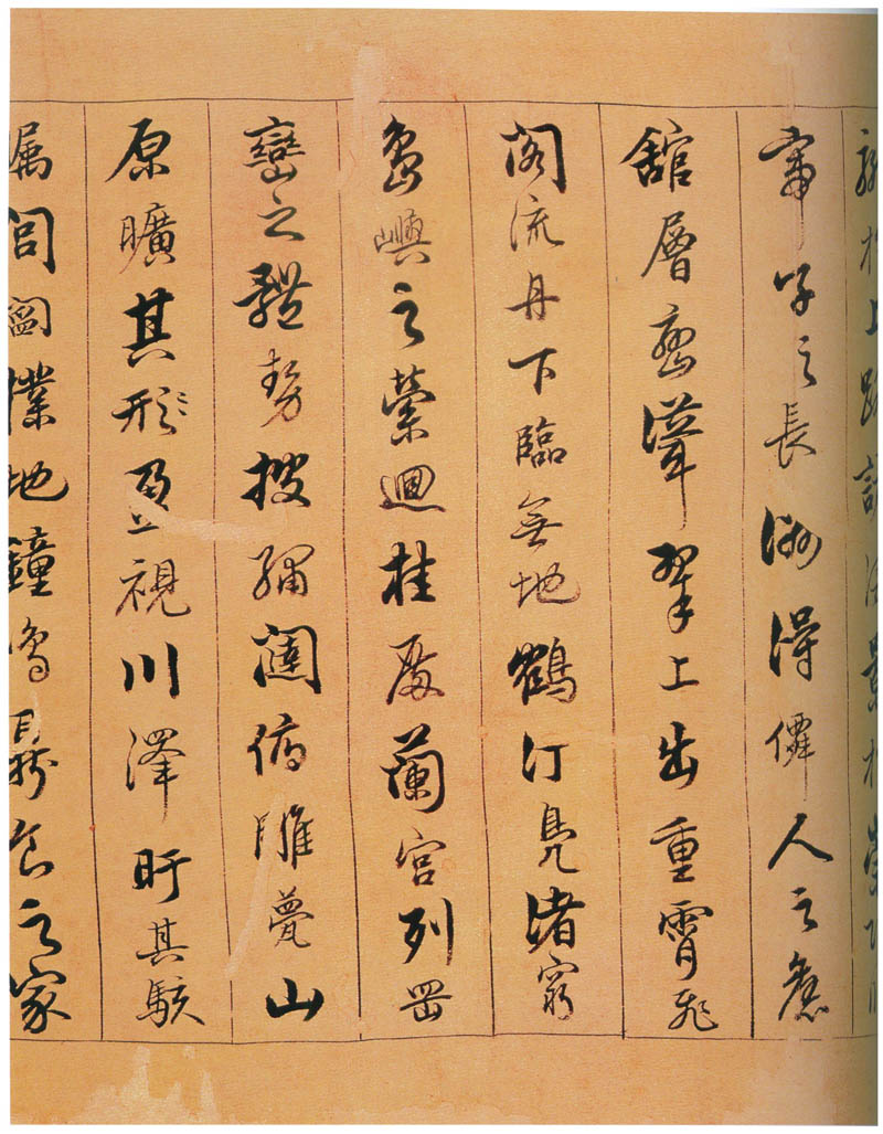 遙吟俯暢,逸興遄飛。爽籟發(fā)而清風(fēng)生,纖歌凝而白云遏。睢園綠竹,氣凌彭澤之樽;鄴水朱華,光照臨川之筆。四美具,二難并。窮睇眄于中天,極娛游于暇日。天高地迥,覺宇宙之無窮;興盡悲來,識盈虛之有數(shù)。望長安于日下,目吳會于云間。地勢極而南溟深,天柱高而北辰遠(yuǎn)。關(guān)山難越,誰悲失路之人;萍水相逢,盡是他鄉(xiāng)之客。懷帝閽而不見,奉宣室以何年?
