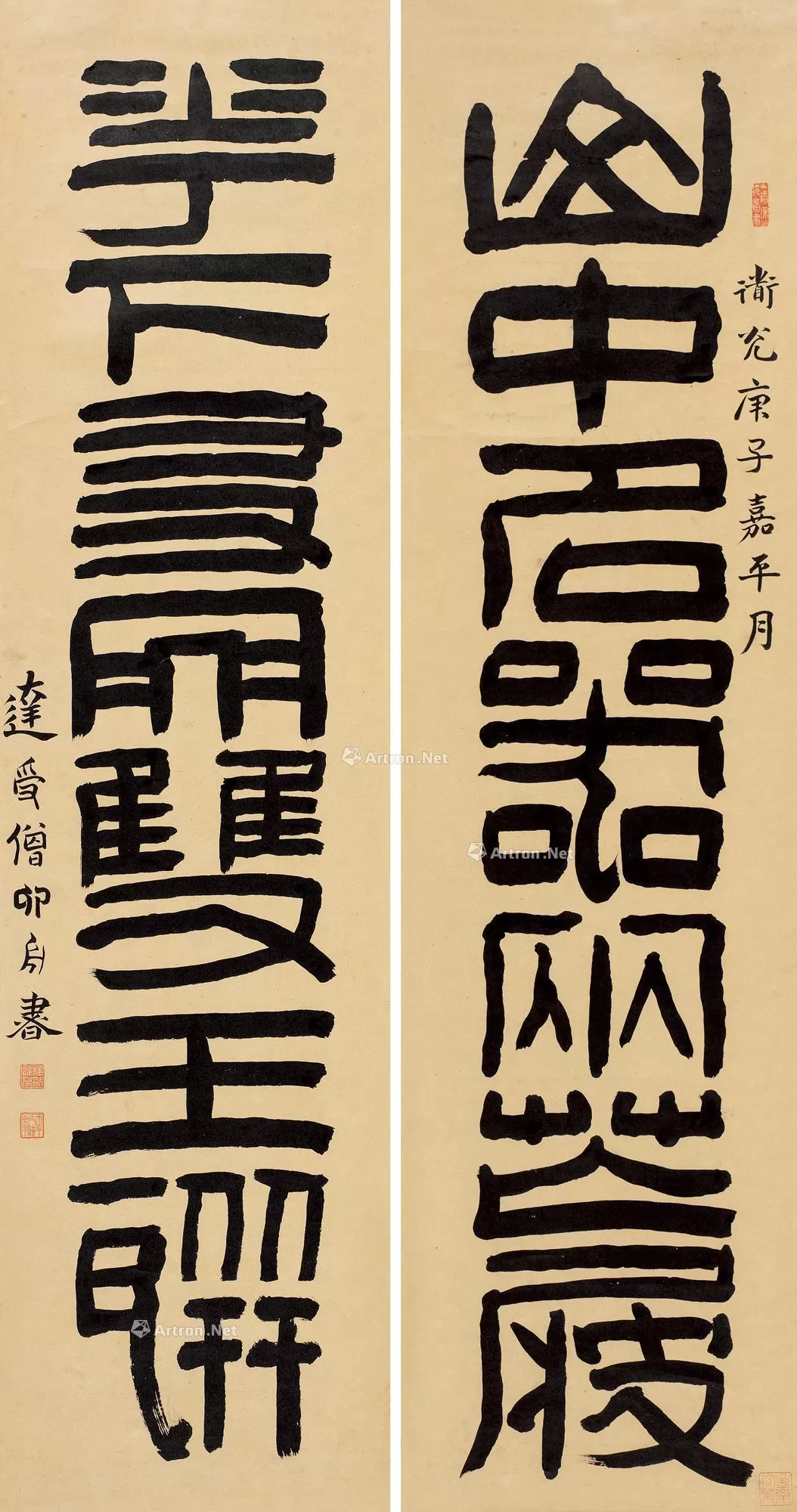 達受《篆書“山中花下”七言聯(lián)》紙本篆書 110.3×28.5cm×2 1840年作 香港邦瀚斯2025拍賣