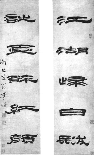 李漁《隸書聯(lián)》 81×21cm×2 私人藏 刊于《新華日?qǐng)?bào)》新華藝壇2010年5月14日