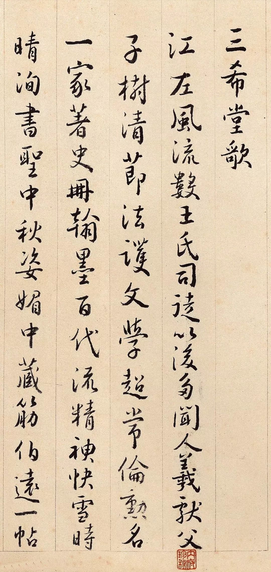 釋文:略 款識:龍文承命作歌識卷末,疑有寶光騰起,爛爛輝星辰。乾隆丙寅春三月,臣沈德潛奉敕敬題。 鈐印:筆霑恩雨(朱文)、沈德潛印(朱文)