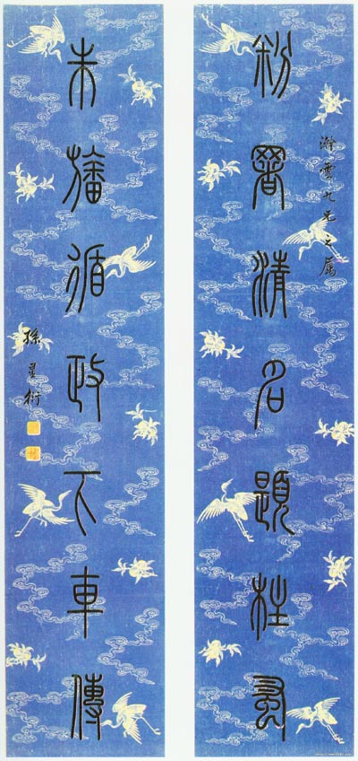 孫星衍《篆書(shū)粉署朱旛七言聯(lián)》絹本篆書(shū) 166×35cm×2 常州市博物館藏