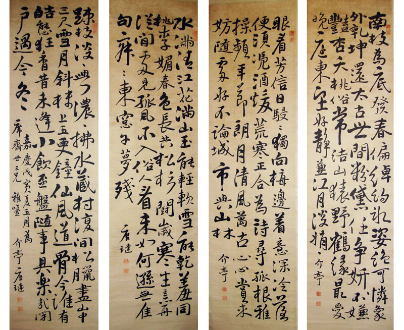 唐璉《行書四條屏》紙本 133cm×34cm×4 "道不遠人"私人收藏