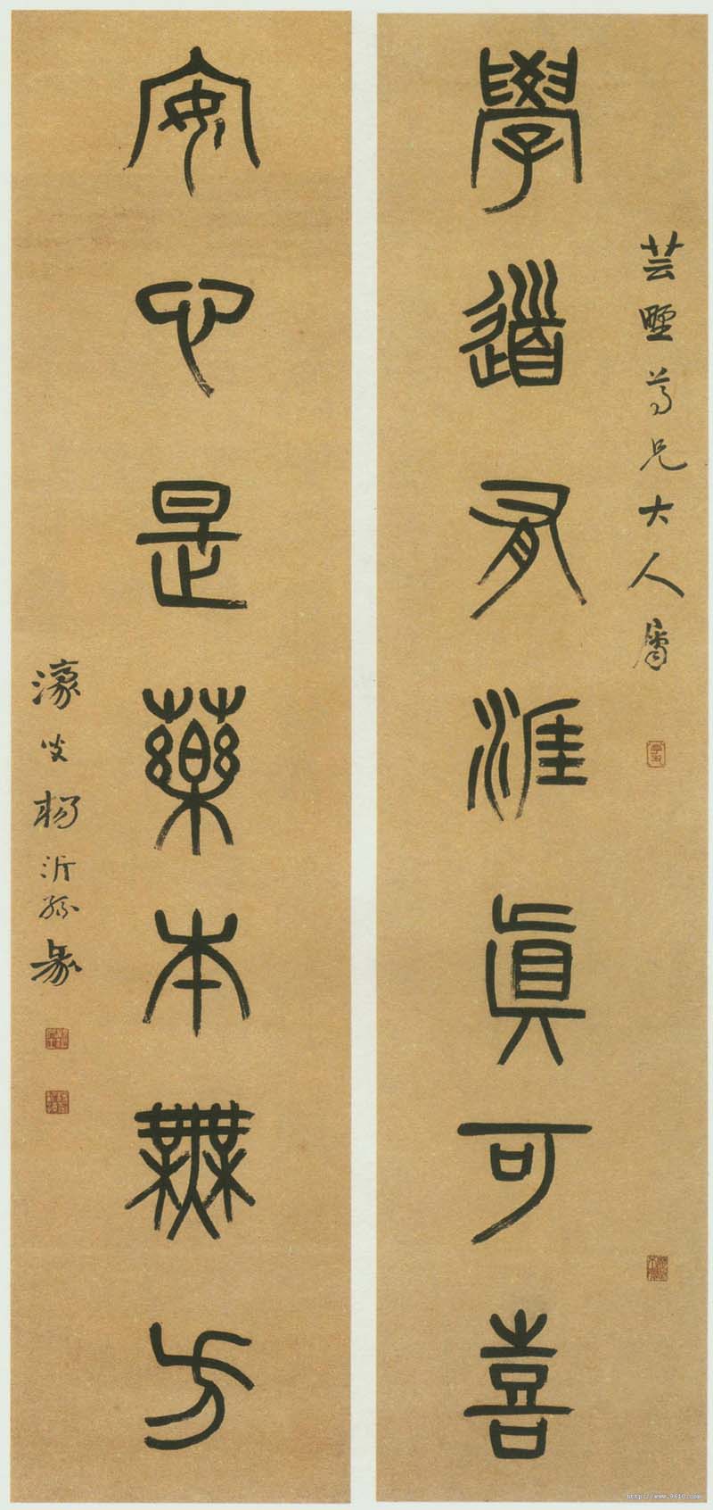 《篆書七言聯(lián)》 紙本 131.3X32cmX2 西泠印社藏 資料來自《西泠印社百年社藏精品》(西泠印社出版社)