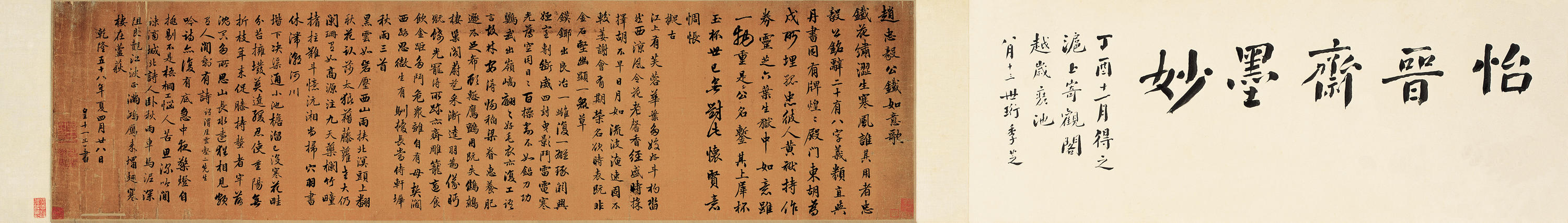 永瑆《自作詩卷》 絹本行楷書 40,8×160,7cm 1793年 南京博物院藏 【資料來源】江蘇省美術(shù)館《書道中興·清代書法演進之路》2023.9.23-10.29
