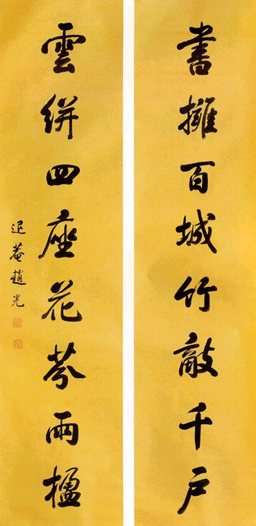 趙光《行書(shū)七言聯(lián)》 云紋蠟箋,163.4×39cm×2