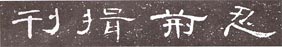 4.收放自如。結(jié)構(gòu)的收放是漢隸各碑共同的主要特點,這一點在《曹全碑》中尤顯突出。其收放主要是通過波挑、撇捺的左右舒展來體現(xiàn)的。如圖六“刊”字左放松,右收緊,“揖”字則相反,是左收右放,“荊”字上放下收,“忍”字上收下放。這樣收放之間,高低錯落,寬窄變化,迎讓避就,兩部分疏密、遠(yuǎn)近得以適當(dāng)調(diào)和,使字生動靈活,可以說收放在《曹全碑》中已發(fā)揮到了極致,成為此碑不可或缺的主要特征,也是此碑成熟的標(biāo)志。這一類字大多筆勢流暢,靜中有動,燕尾翩翩,體態(tài)舒徐,疏密縱斂的對比格外強烈。《曹全碑》飄逸秀麗的風(fēng)格主要體現(xiàn)在這里。