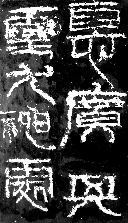 就是以隸書(shū)的方法來(lái)寫(xiě)篆書(shū)。東漢已不是篆、隸書(shū)體的轉(zhuǎn)變階段,所以這種特征與秦隸中夾雜篆體是兩回事。只要看一看《祀三公山碑》上時(shí)有在橫畫(huà)的末尾裝上一個(gè)“現(xiàn)代”的波挑捺腳,就可以清楚地看到,不管它如何盡力寫(xiě)成篆書(shū)的結(jié)構(gòu),終究打上了隸書(shū)時(shí)代的烙印。