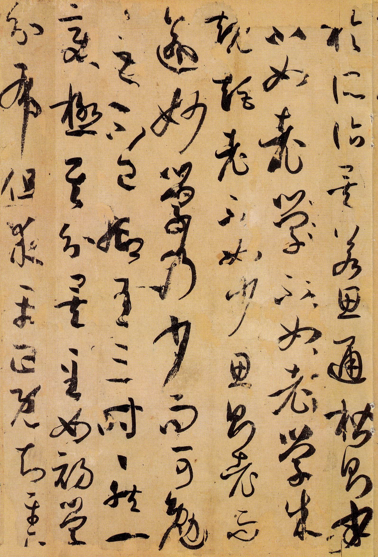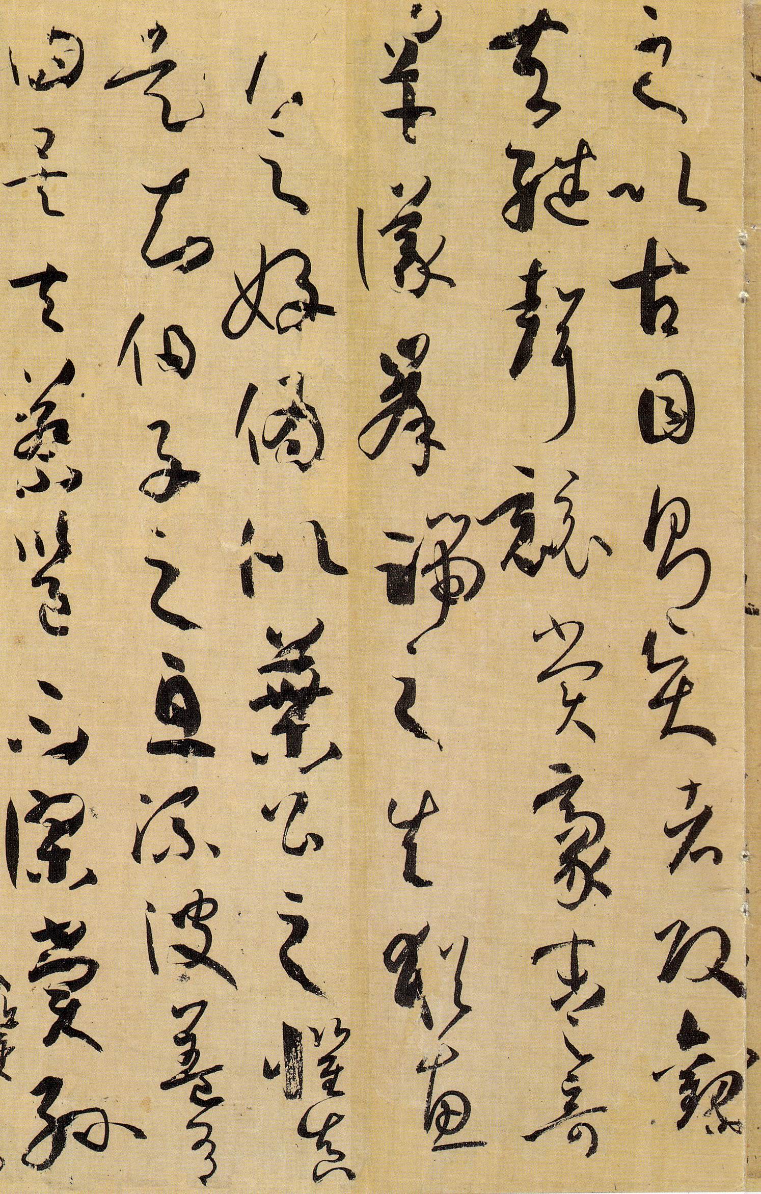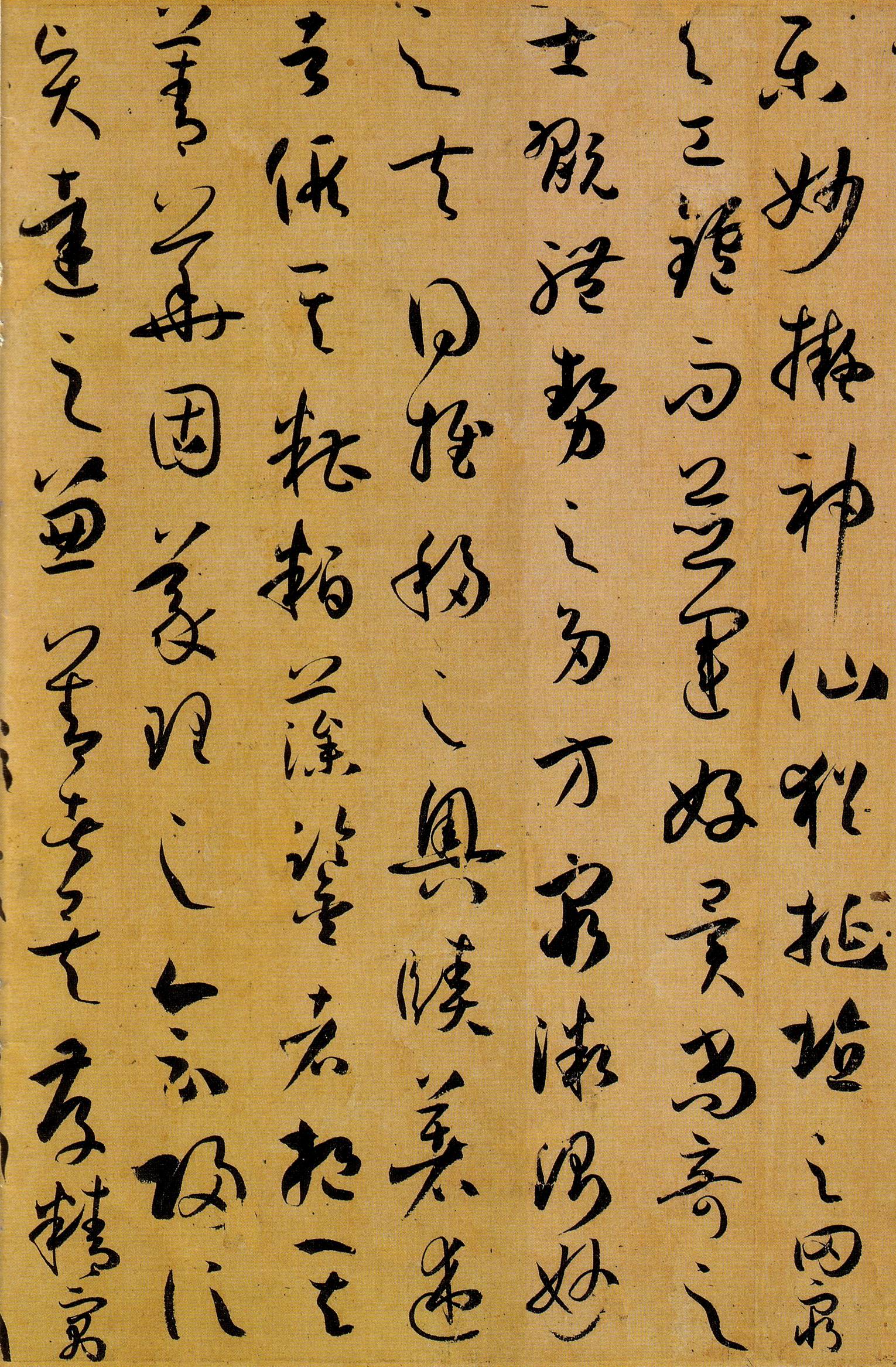孫過庭專習(xí)王羲之草書,筆法精熟,唐代無人能與他相比。本卷紙墨精好,神彩煥發(fā),不僅是一篇文辭優(yōu)美的書學(xué)理論,也是草書藝術(shù)的理想典范。卷中融合質(zhì)樸與妍美書風(fēng),運筆中鋒側(cè)鋒并用,筆鋒或藏或露,忽起忽倒,隨時都在變化,令人目不暇給。筆勢縱橫灑脫,達到心手相忘之境。(撰稿、何傳馨)