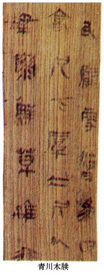 《青川木牘》只有一枚正面字跡清晰,其余皆殘損過甚,不可識讀。內(nèi)容為更修田律、律令、修改封疆、修道治會、筑堤修橋、疏通河道等六事。文字學(xué)家認(rèn)為其字體屬古隸。篆書圓曲形筆劃已漸漸被分解為直的筆劃,體勢平正并趨向隸書的扁勢,波磔已有萌芽跡象。由此可見,在戰(zhàn)國晚期,隸書字體已逐漸成形。