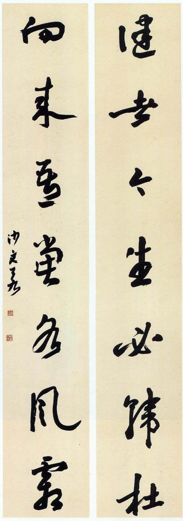 沙孟海《朱強邨集七言聯(lián)》 143×23.5cm×2 1948年