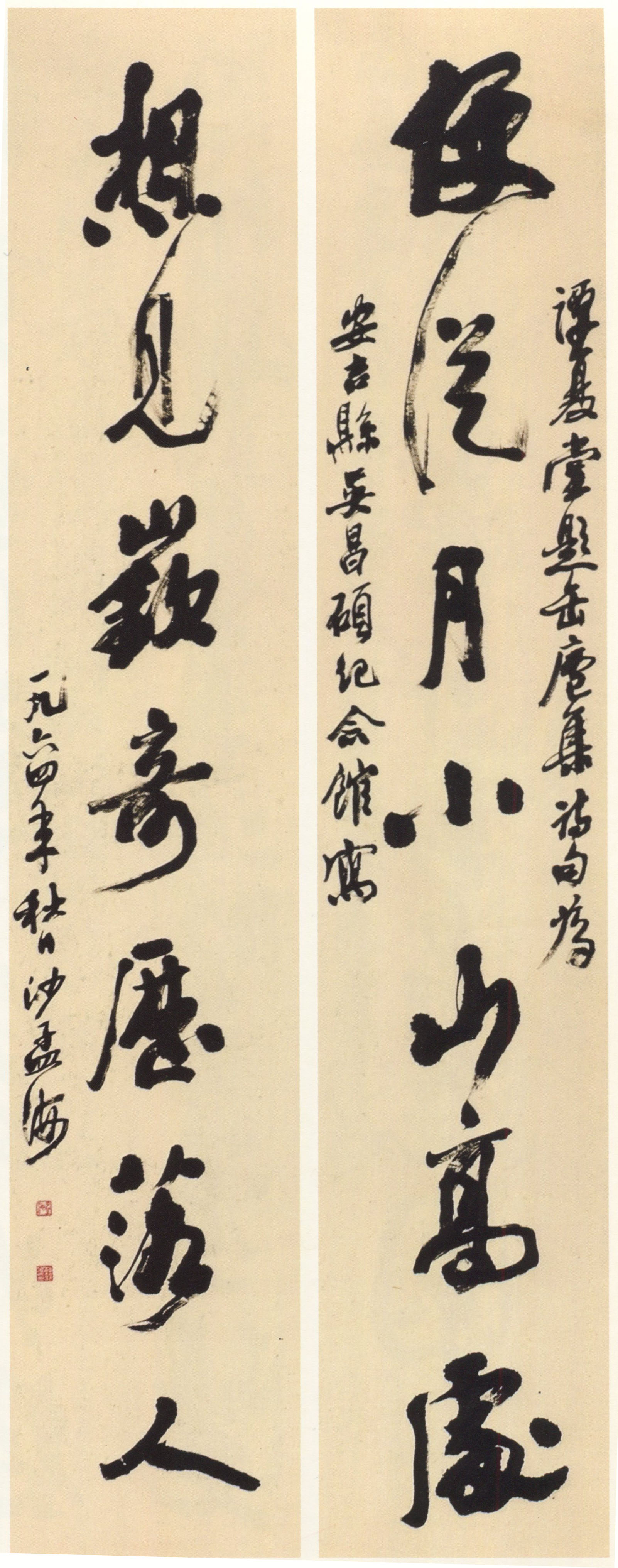 沙孟海《題安吉吳昌碩紀(jì)念館七言聯(lián)》137.5×25.5cm×2 1964年