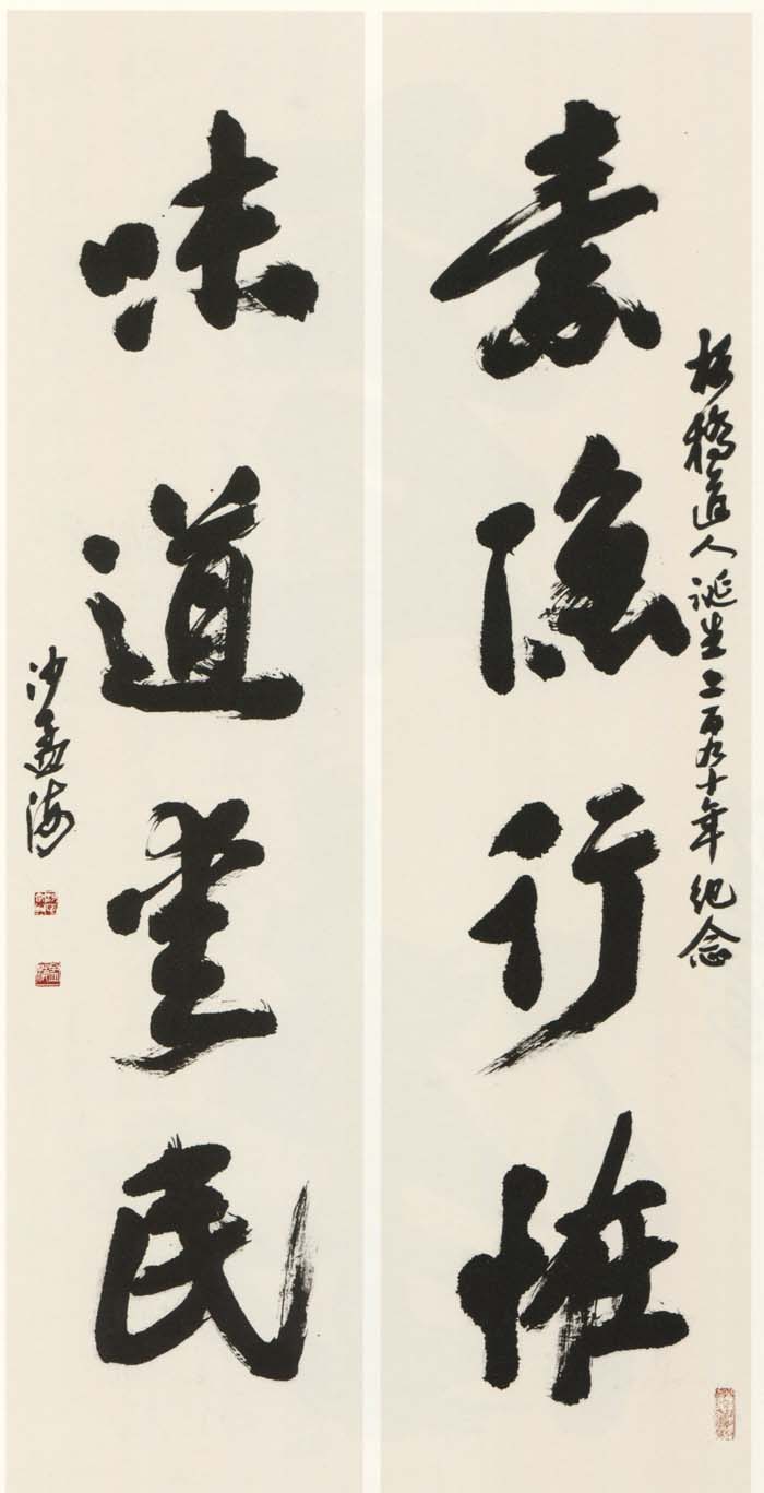 沙孟海《題興化鄭板橋紀(jì)念館四言聯(lián)》 134×33cm ×2 1983年