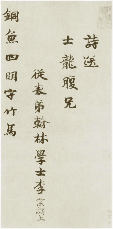 李宗諤 《送士龍詩》 楷書 臺北故宮博物院藏