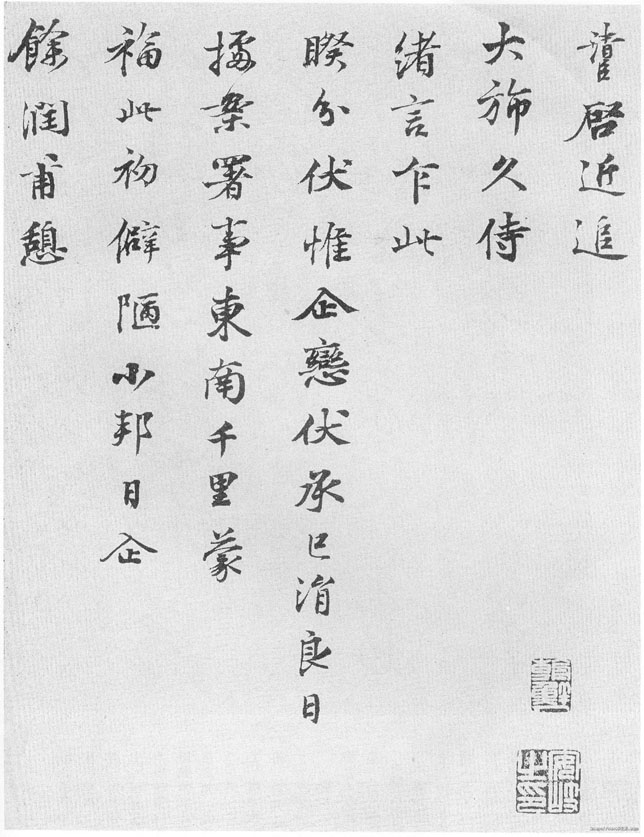 清臣啟 近追大旆 久侍緒言 乍此暌分 伏惟企戀 伏承已涓良日 據(jù)案署事 東南千里 蒙福此初 僻陋小邦 日企余潤 甫憩棠苃 體中若何 聽決余閑 善輔沖守 不宣 清臣再拜 資政大諫天休十兄 防閤 七月五日
