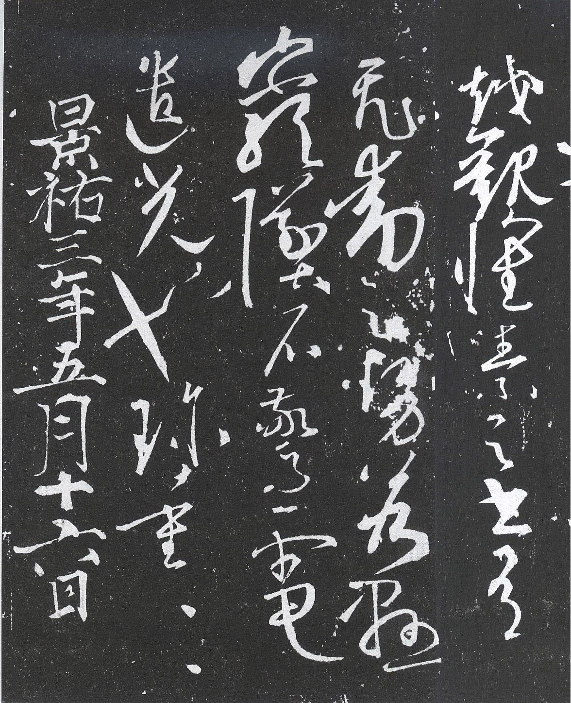 釋文:越觀懷素之書有飛動(dòng)之勢 若懸?guī)r墜石驚電遣光也 珍重珍重 景祐三年五月十六日