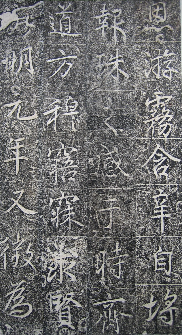 《明徵君碑》即《明僧紹碑》,矗立于南京棲霞寺前,并覆以碑亭。碑立于唐高宗上元三年( 676年),高2.74米,寬1.21米,厚0.36米。碑文為高宗(李治)所 撰,通篇四六韻文,后用十首銘詞結束。高正臣書。筆法俊逸 清秀,剛柔有致。字體結構與《圣教序》仿佛,可見當時書體風格特點。碑面除碑額 王知敬篆書“明徵君碑”四字外,均為行書,共2376字,現尚存2363 字,僅缺13字。字跡清晰可辨。碑陰有“棲霞”兩個大字,據傳為高宗親筆,筆力 遒勁、雄渾。這座碑歷經一千多年的風雨侵蝕;尚能不失其當年光彩,堪稱奇跡。在 全國現存唐碑中,是極罕見的珍品。