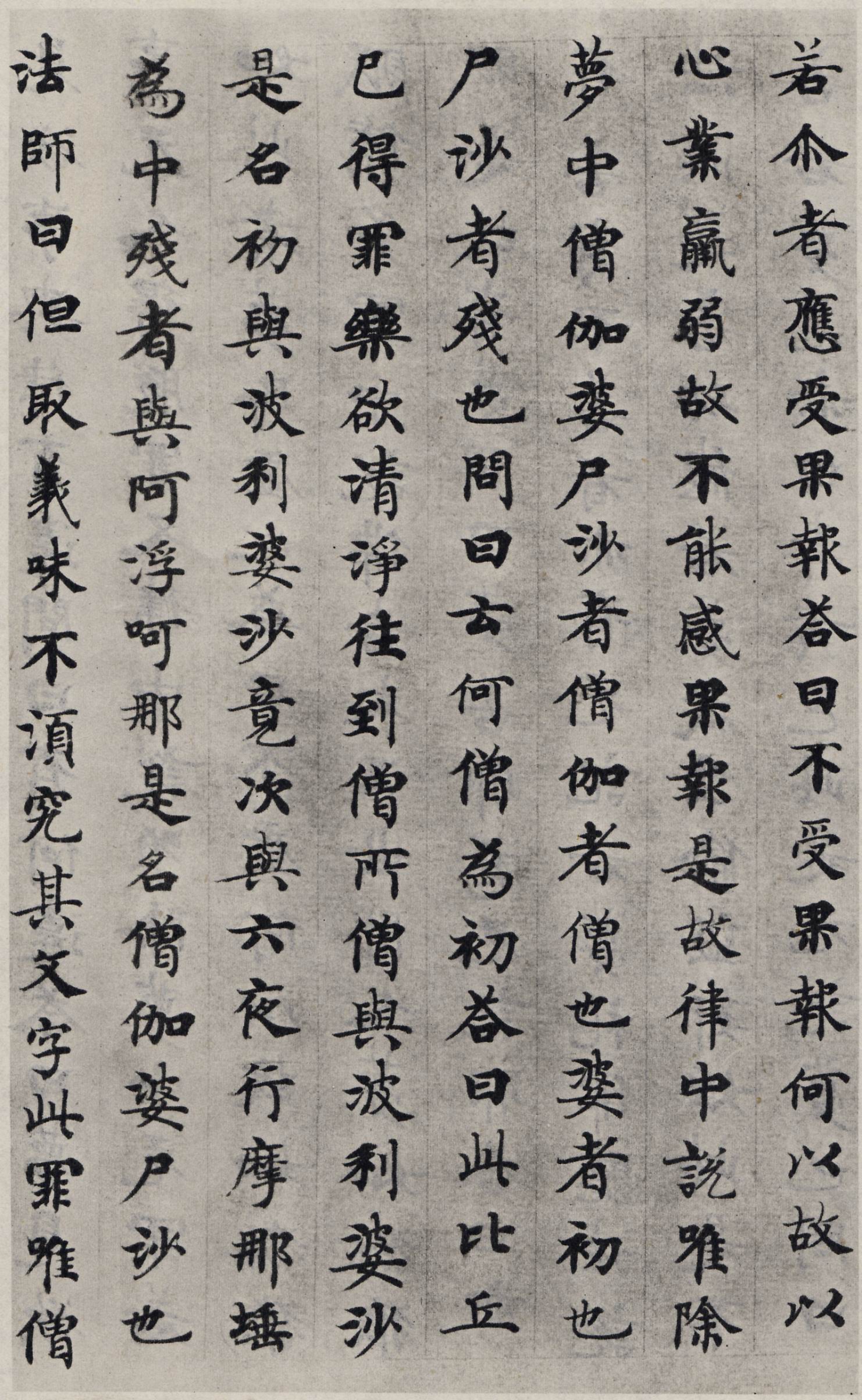 唐人寫經(jīng),多不落名款,有的雖有名款但非名人,故以往書家并未給予足夠注意。其實(shí),由于唐代重書學(xué),特別在中唐、盛唐,寫經(jīng)書法水平一般很高。《善見律》述釋迦牟尼弘佛之事,卷末上端書“善見律卷”,下署“貞觀廿二年十二月十日國詮寫”。此卷經(jīng)書工整,結(jié)構(gòu)點(diǎn)畫均勻秀勁,運(yùn)筆靈活熟練,輕重適宜。全篇一氣呵成,造詣精湛。