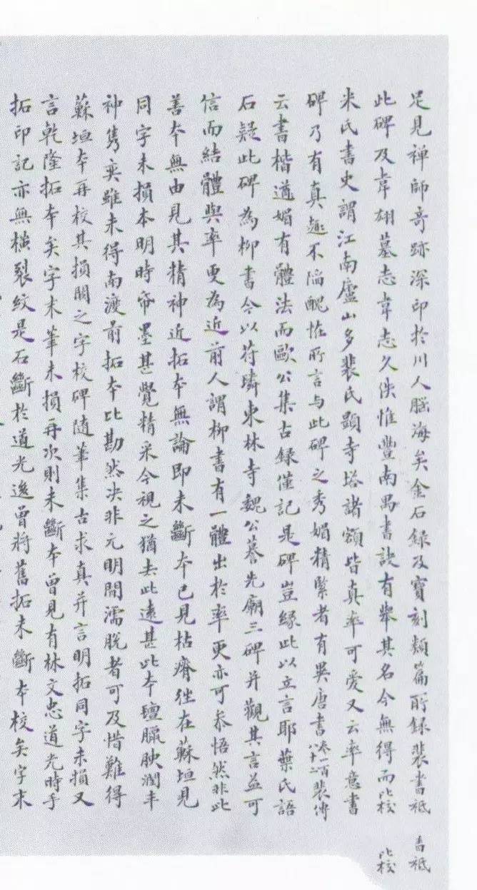 此碑筆筆謹(jǐn)嚴(yán),清勁瀟灑,結(jié)構(gòu)尤為精密,取法于歐、柳,是唐碑珍品。