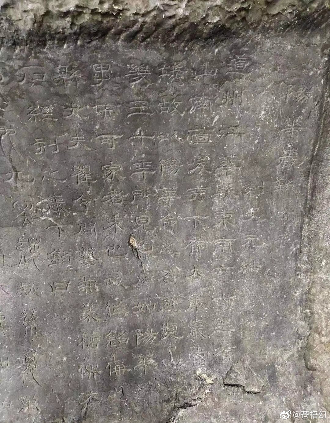 《陽華巖銘》,唐永泰二年(766年)刻,在湖南江華縣(今江華瑤族自治區(qū)),元結(jié)撰文,瞿令問書,刻于摩崖。前七行序文為隸體,后三十五行銘文,仿魏三體石經(jīng)體例,每字先古文,次小篆,再次隸書。