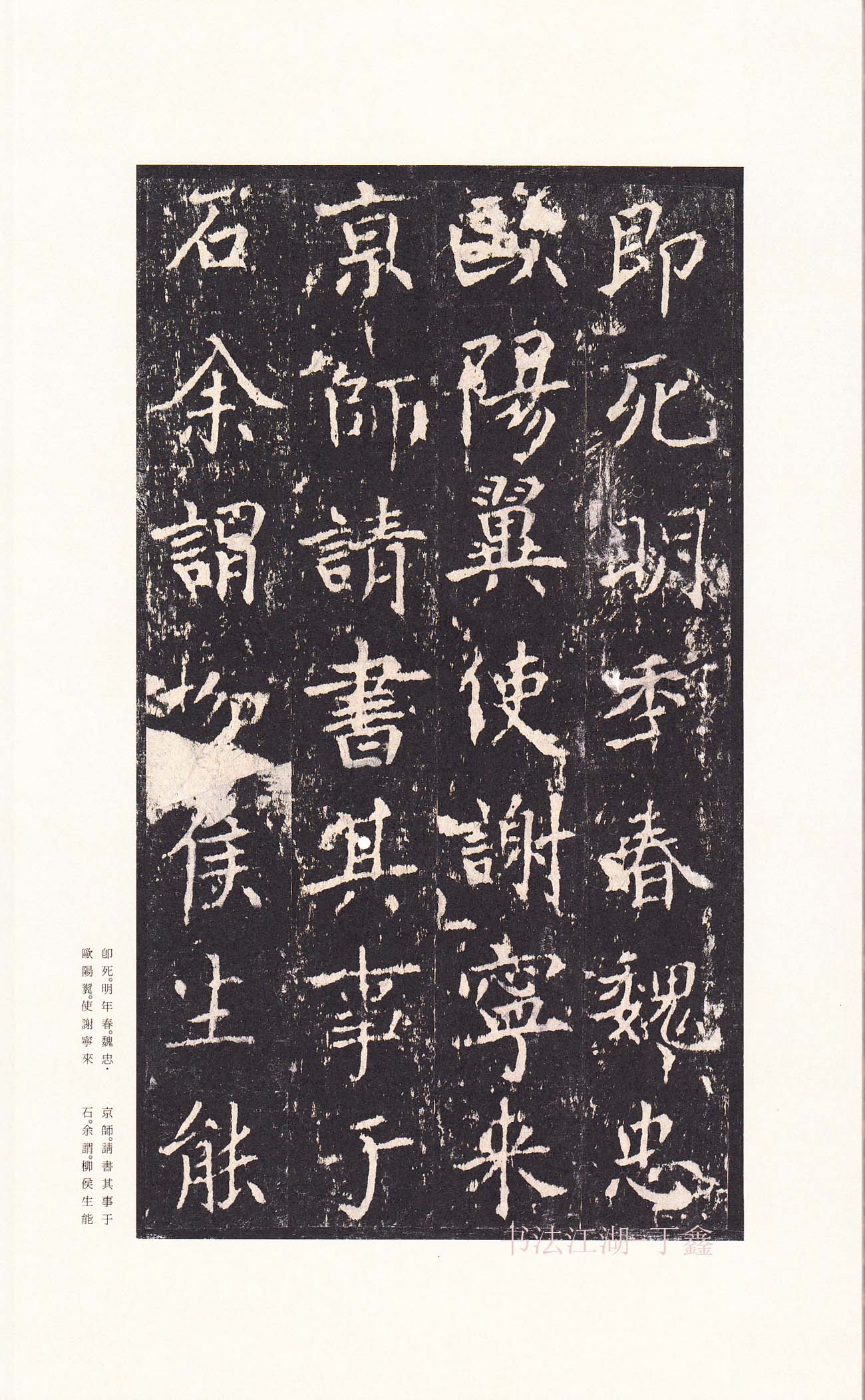 《柳州羅池廟碑》為沈傳師53歲時(shí)所書(shū),碑文由大文學(xué)家韓愈撰寫(xiě),紀(jì)念頌揚(yáng)柳宗元被貶任柳州刺史所做的政績(jī)。碑立于羅池廟內(nèi),碑石早已不存,至于何年遭毀,現(xiàn)無(wú)從查考,今所見(jiàn)拓本乃據(jù)清何紹基舊藏宋拓孤本一冊(cè)影印。