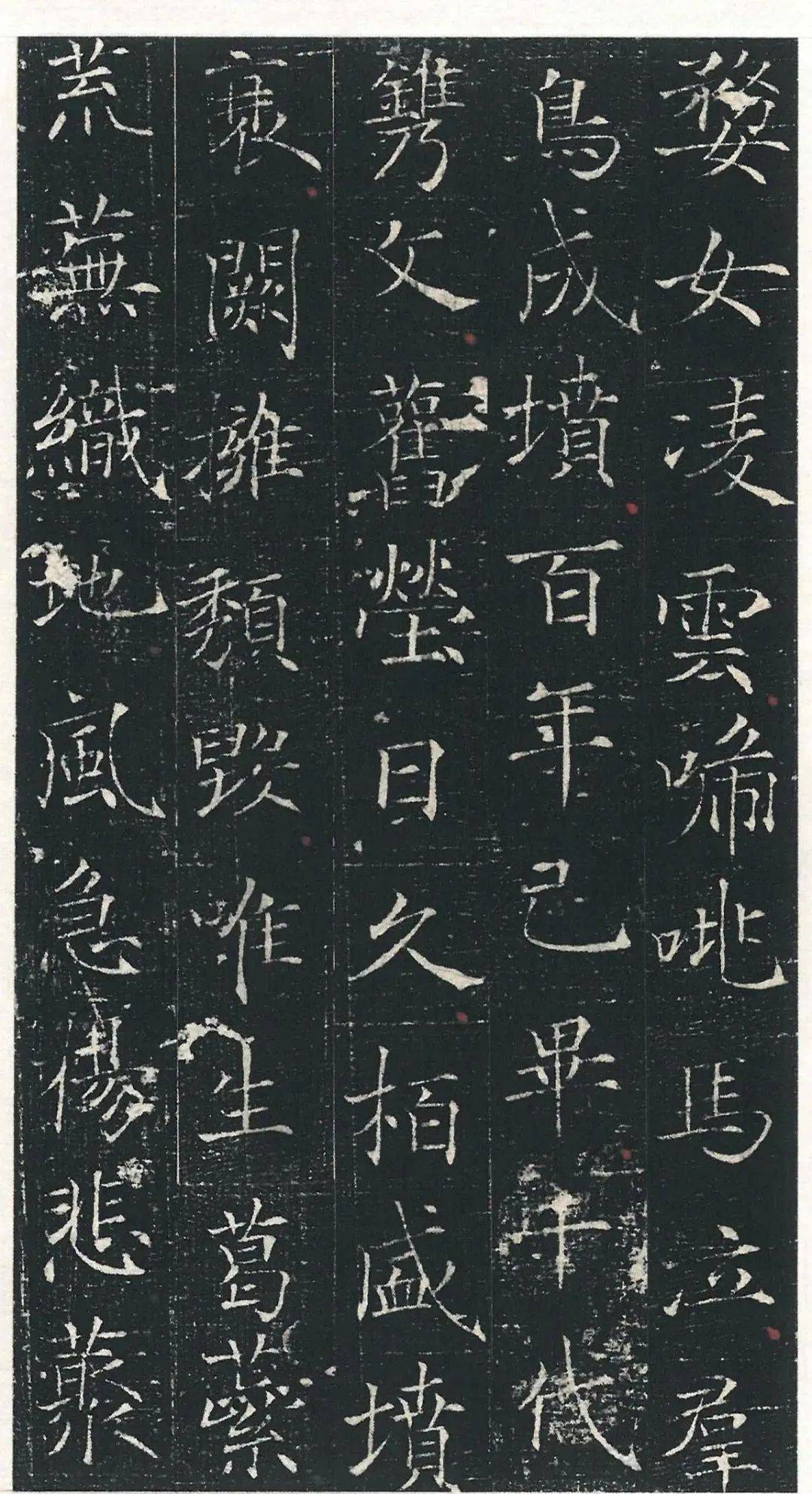 雖然墓主等級不高,其名也不顯,但此志書風極似褚遂良,書寫醇正平和,使轉勁健灑脫,結字更是著意摹擬褚書《雁塔圣教序》,且極為肖似。故其書寫和鐫刻是梳理唐墓志書法風格的一件坐標性作品。清人梁巘《評書》中有:“褚書提筆‘空’,運筆‘靈’。瘦硬清挺,自是絕品。”以此觀《馬府君夫人墓志銘》可知此銘文的書寫非對褚遂良書法浸淫深厚者不能為。志文的書寫中尤其是結字的體勢和氣息的把握,如以第七列“可教”、第十列“晨夕”、第十六列“乙丑”等字,與褚書《雁塔圣教序》中的原字對比的話,均可以看出在唐開元年間,褚遂良書風影響的深廣。