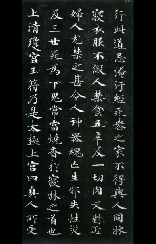 清包世臣在《藝舟雙楫·右下筆潭》中稱其:“如新鶯歌白囀之聲”,楊守敬評:“靈飛經(jīng)一冊,最為精勁,為世所重”。《靈飛經(jīng)》的章法為縱有行,橫無列。由于整篇字的大小、長短、參差錯落,疏密有致,變化自然,且整篇字與字之間,行與行之間顧盼照應(yīng),通篇字渾然一體,雖為楷書,卻有行書的流暢與飄逸之氣韻,變化多端,妙趣橫生。