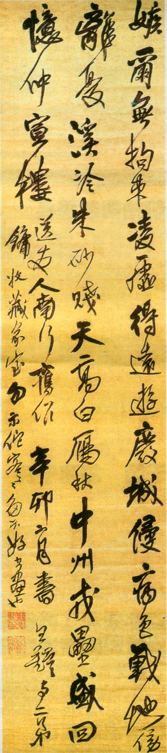 王鐸《行書五絕立軸》 綾本 縱225cm,寬51.5cm。辛卯(1651)年作