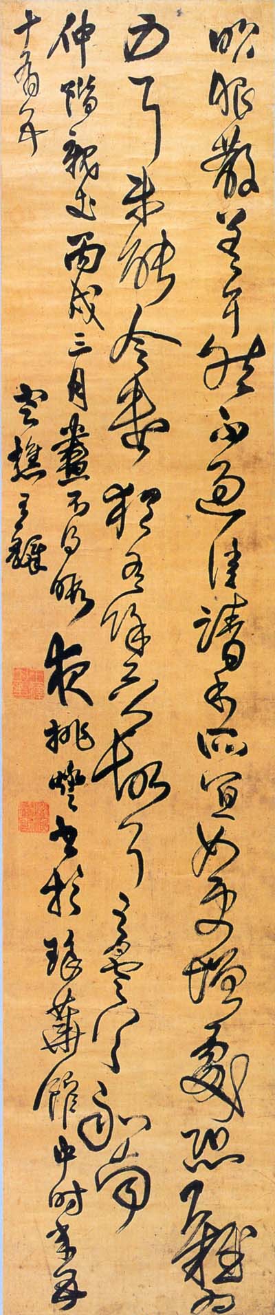 王鐸《臨王曇首昨服散帖》草書絹本, 227×47cm 順治三年(1646) 廣州藝術(shù)博物院藏。